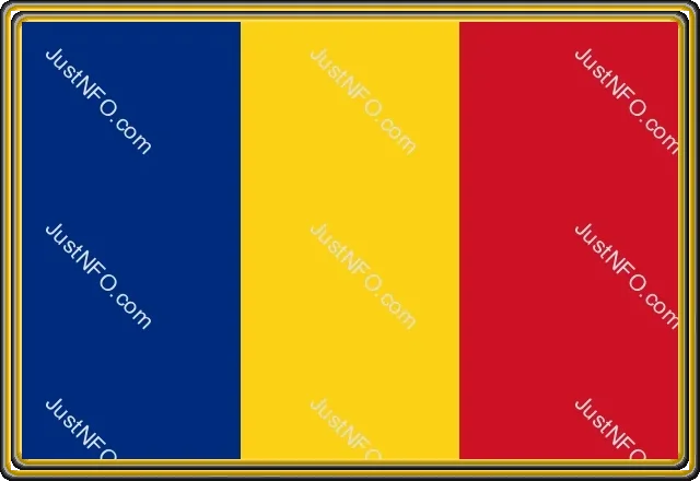 صورة علم رومانيا المكوّن من ثلاثة أشرطة عمودية بالألوان الأزرق والأصفر والأحمر، يرمز الأزرق للسماء، والأصفر للثروة الزراعية، والأحمر للشجاعة والتاريخ الوطني للبلاد.