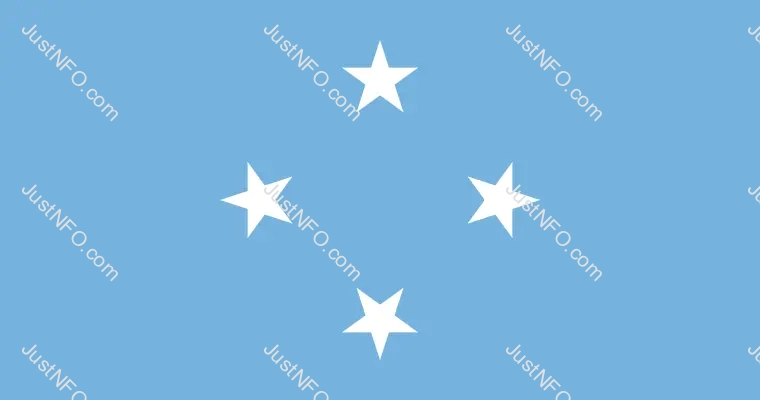 يتكون علم ميكرونيسيا من خلفية زرقاء فاتحة وأربع نجوم بيضاء مرتبة في شكل ماسي.