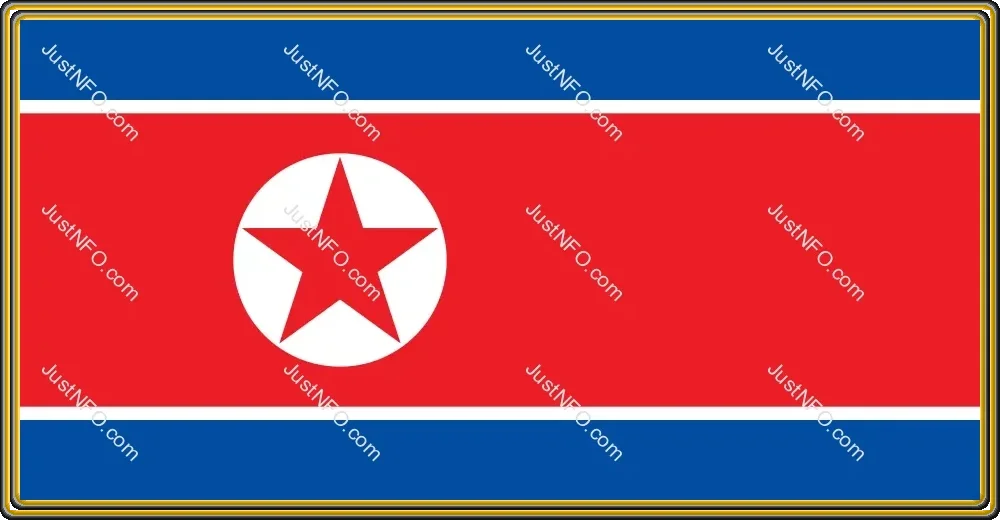 علم كوريا الشمالية الأزرق والأحمر مع الدائرة البيضاء والنجمة الحمراء