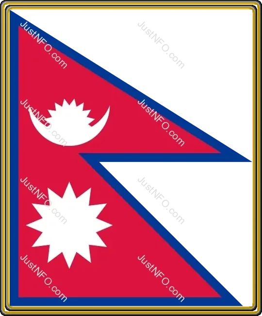 علم نيبال الفريد بشكل مثلثين متتاليين مع رمز الشمس والقمر